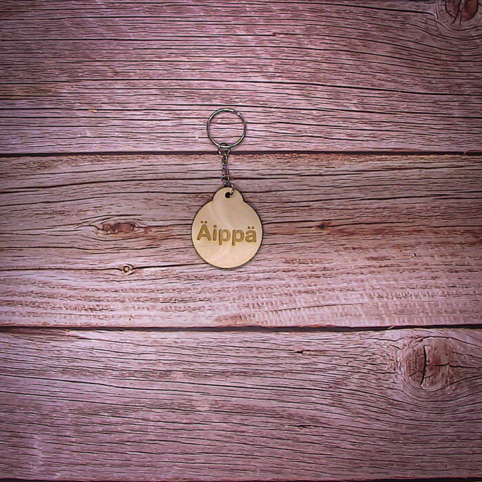 Tämä pyöreä avaimenperä on valmistettu laadukkaasta kotimaisesta koivusta, mikä tekee siitä kestävän ja pitkäikäisen käyttöesineen. Avaimenperässä on eri tekstit, jotka antavat sille persoonallisen ilmeen.