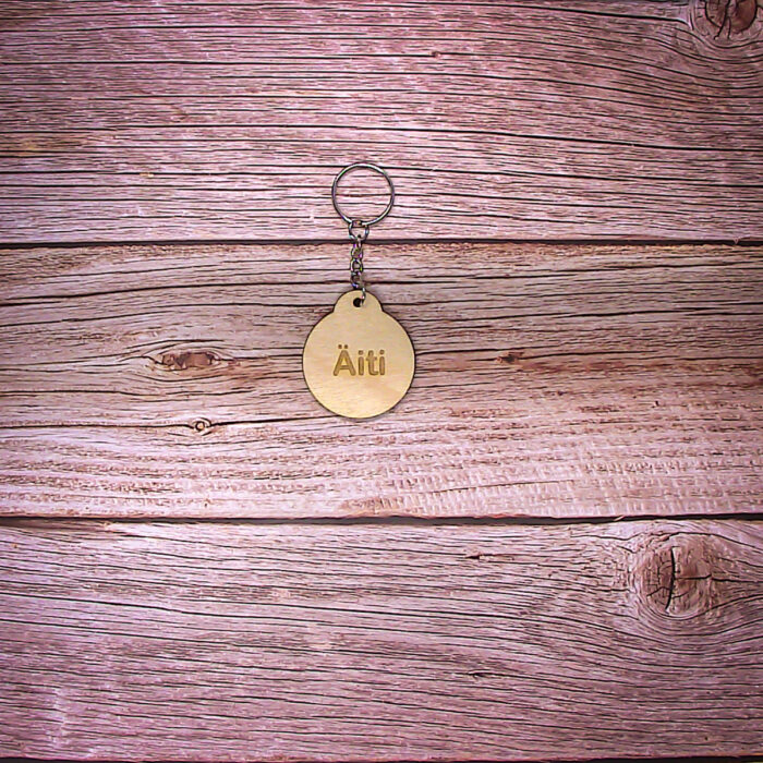 Tämä pyöreä avaimenperä on valmistettu laadukkaasta kotimaisesta koivusta, mikä tekee siitä kestävän ja pitkäikäisen käyttöesineen. Avaimenperässä on eri tekstit, jotka antavat sille persoonallisen ilmeen.