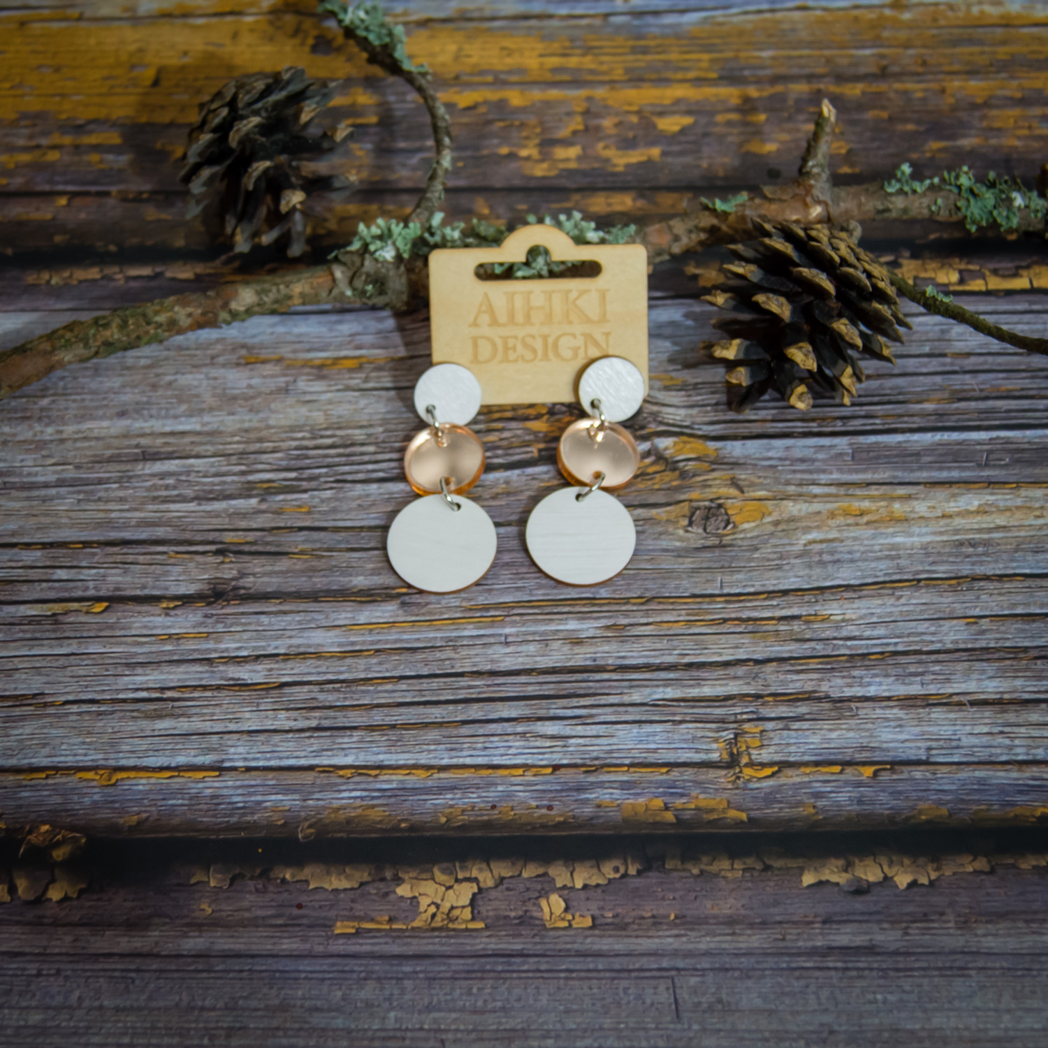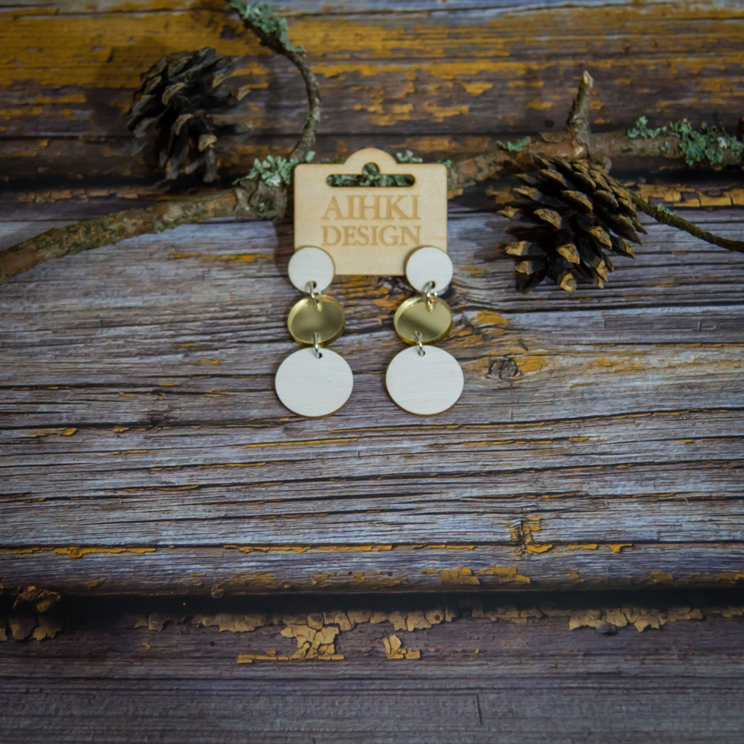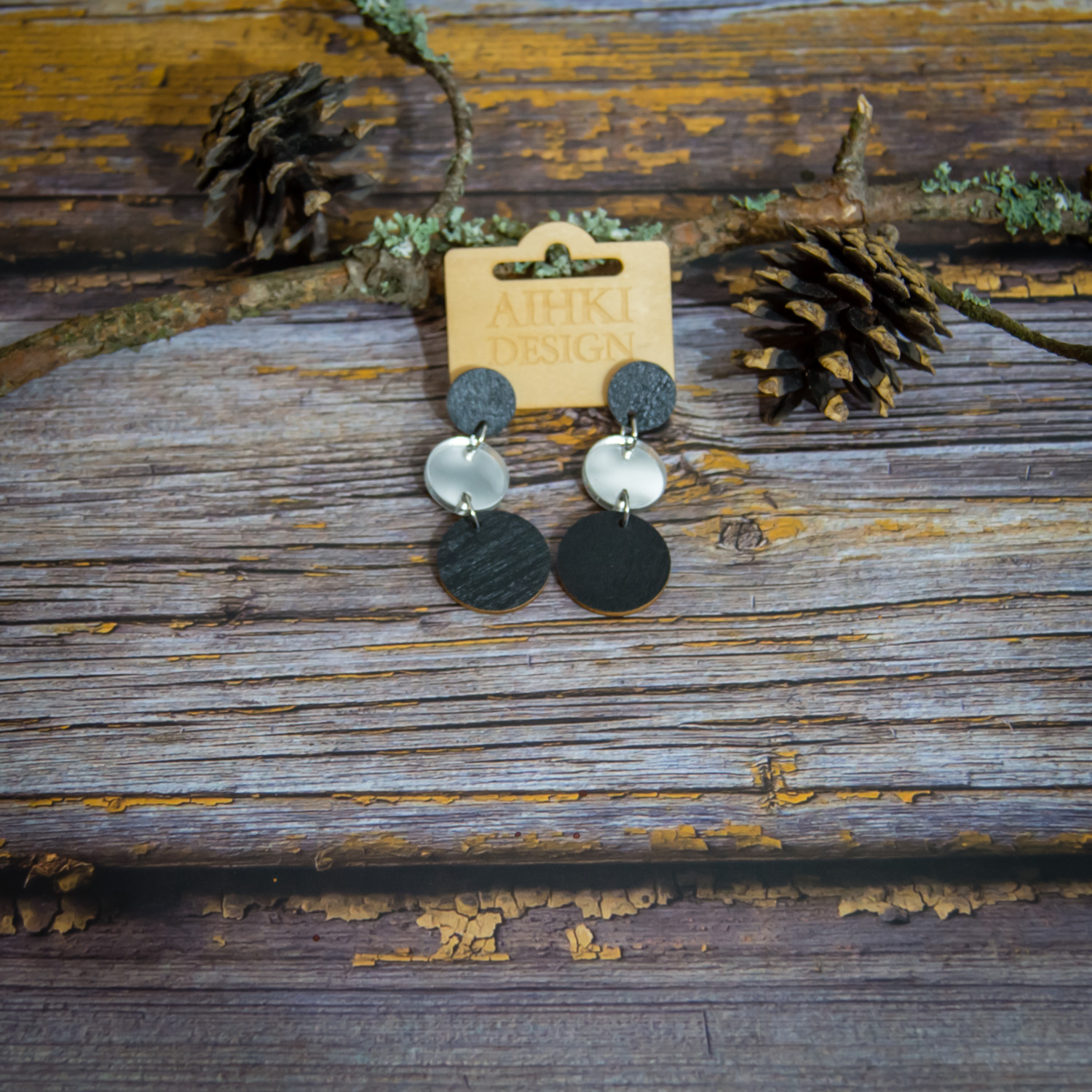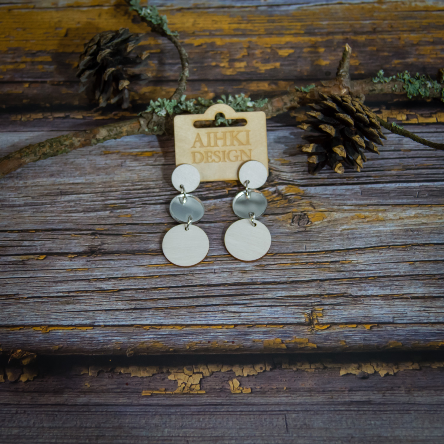 Tärkeää huomioitavaa on, että laserleikattujen korujen reunoissa näkyy polttojälki, mikä lisää tuotteeseen elävyyttä ja syvyyttä. Säilytä korut huolellisesti ja vältä voimakasta vääntelyä. Vaikka vanerista valmistetut tuotteet kestävät sadetta, suosittelemme välttämään niiden altistamista suihkulle, saunalle tai uimiselle. Huomaa myös, että värisävyt voivat hieman poiketa kuvassa näkyvistä väreistä, sillä ne ovat riippuvaisia omista väriasetuksistasi. Jokainen erä maalataan käsin, joten erien välillä voi pieniä eroja olla.
