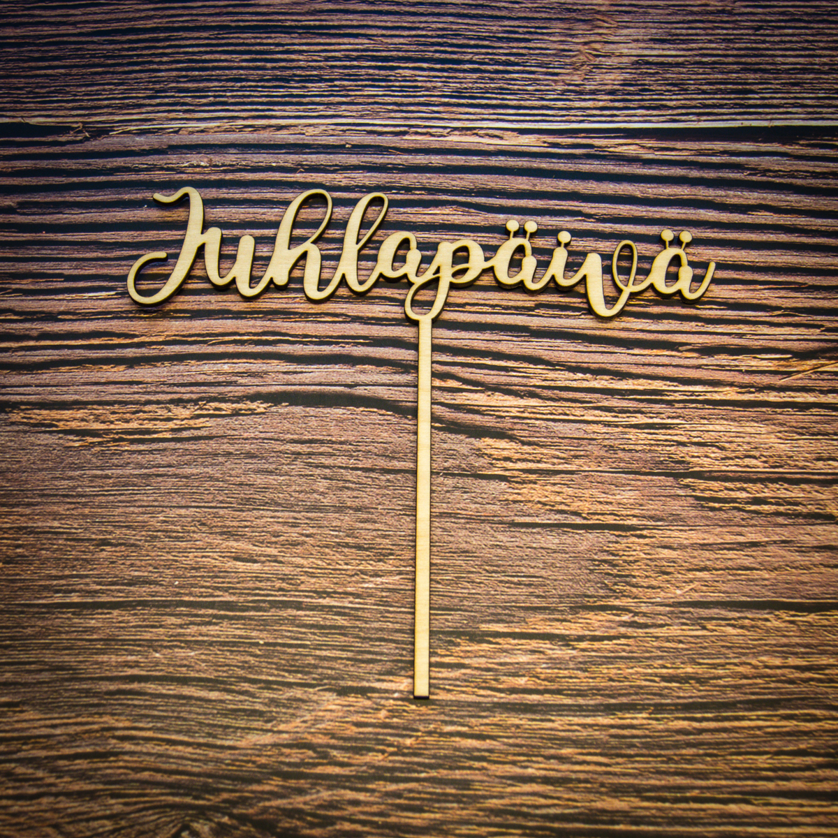 kakkukoriste, kotimainen koivu, vaneri, juhlapäivä, synttärit, juhlat, paljon onnea, hääpäivä, ekologinen, koriste juhliin, kesäjuhliin, kesäjuhlat, kaunis