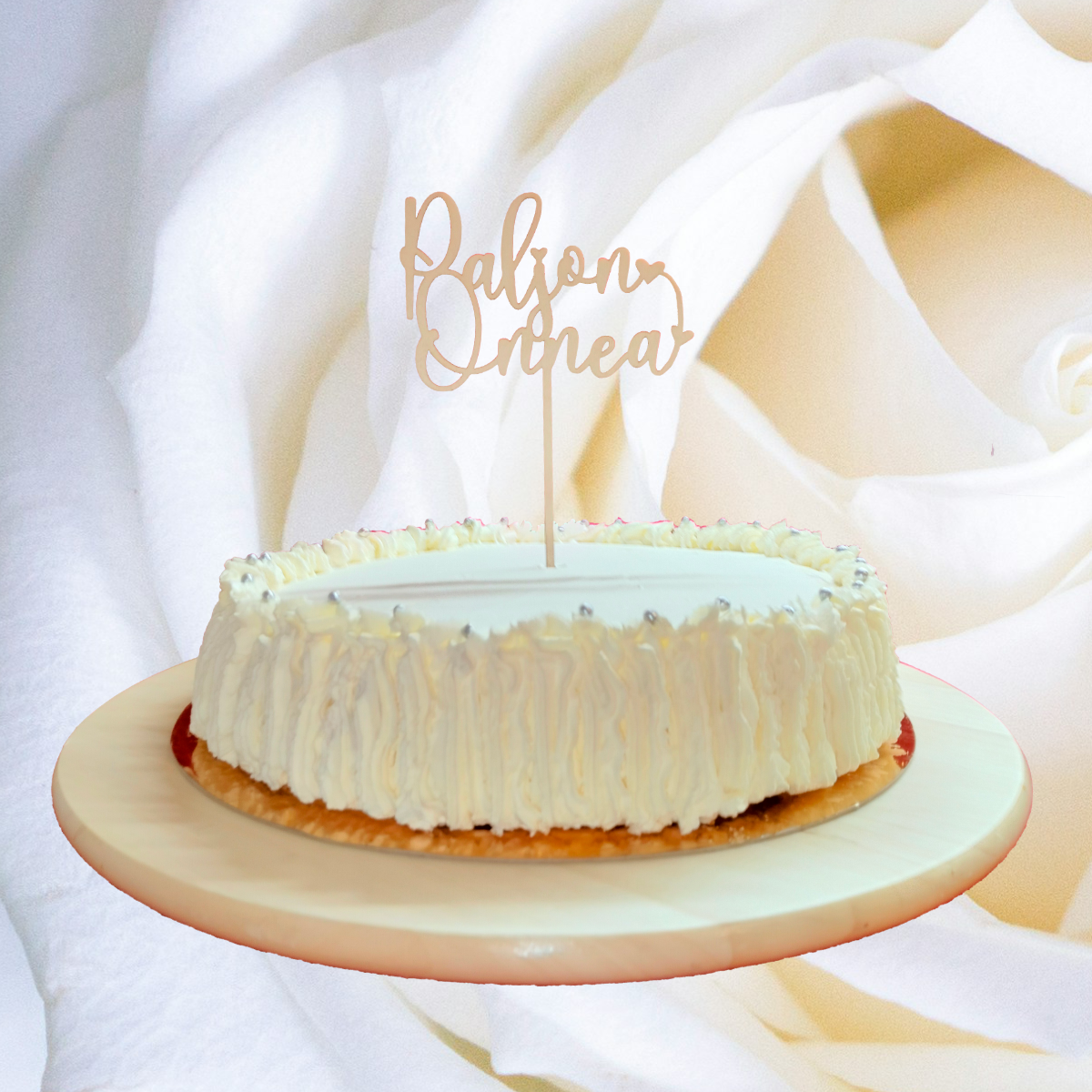 Kaunokirjoituksella varustettu kakkukoriste tuo juhlaasi tyyliä. Valitsemalla puisen kakkukoristeen, teet ekologisen valinnan verrattuna muoviseen koristeeseen.