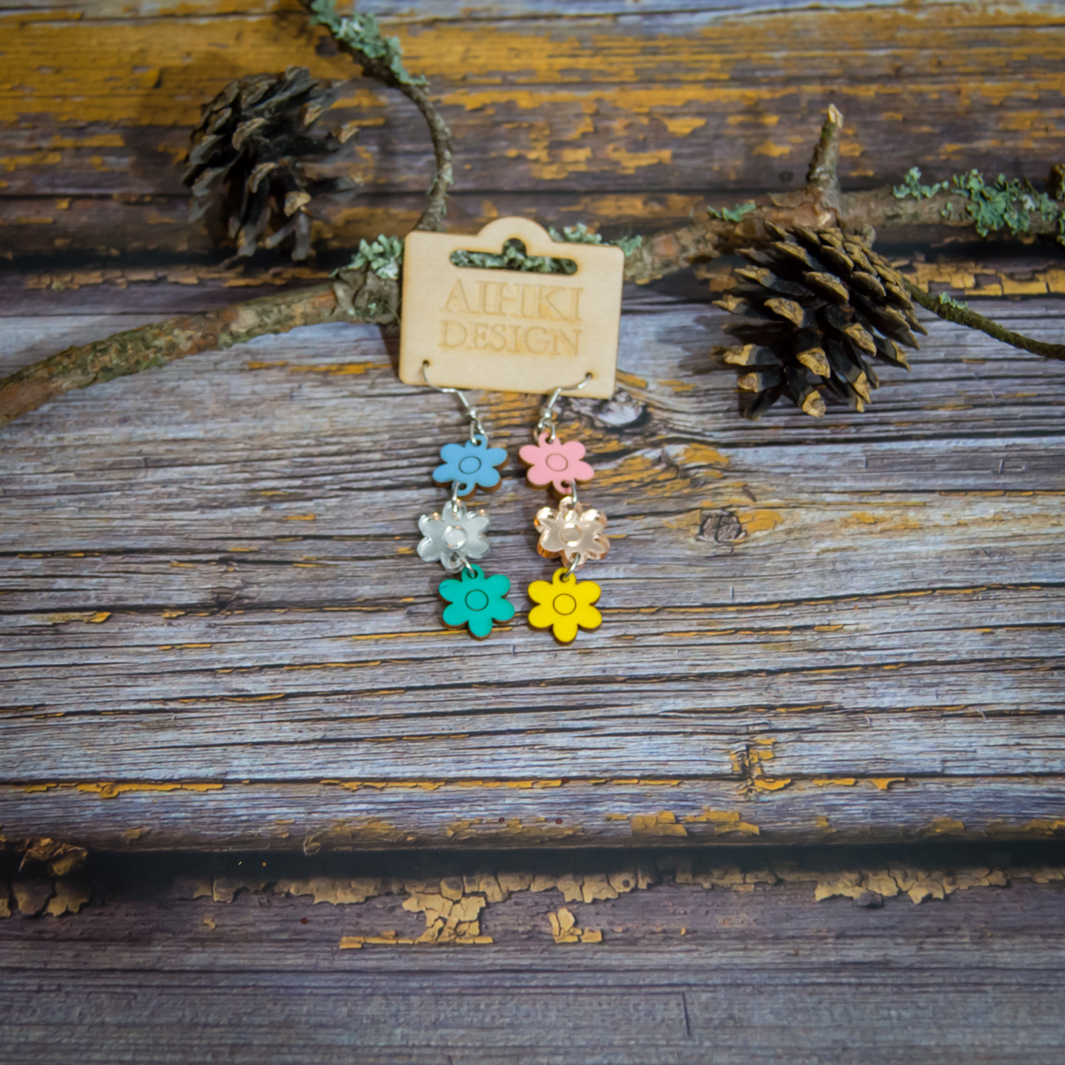 Kukkaketju-korvakorut tuovat korviisi kolmen kukan iloisen rivistön.