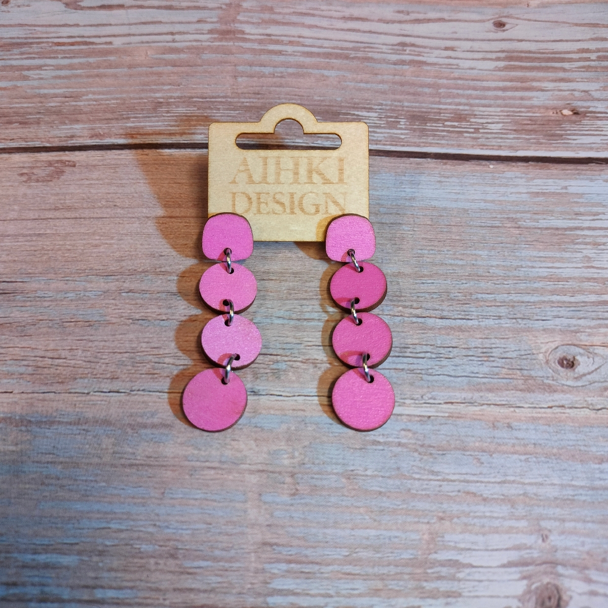Tärkeää huomioitavaa on, että laserleikattujen korujen reunoissa näkyy polttojälki, mikä lisää tuotteeseen elävyyttä ja syvyyttä. Säilytä korut huolellisesti ja vältä voimakasta vääntelyä. Vaikka vanerista valmistetut tuotteet kestävät sadetta, suosittelemme välttämään niiden altistamista suihkulle, saunalle tai uimiselle. Huomaa myös, että värisävyt voivat hieman poiketa kuvassa näkyvistä väreistä, sillä ne ovat riippuvaisia omista väriasetuksistasi. Jokainen erä maalataan käsin, joten erien välillä voi pieniä eroja olla.