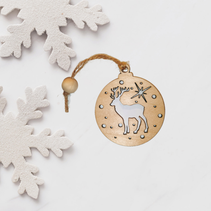Kuusenkoristesetti valmistettu kotimaisesta koivuvanerista.