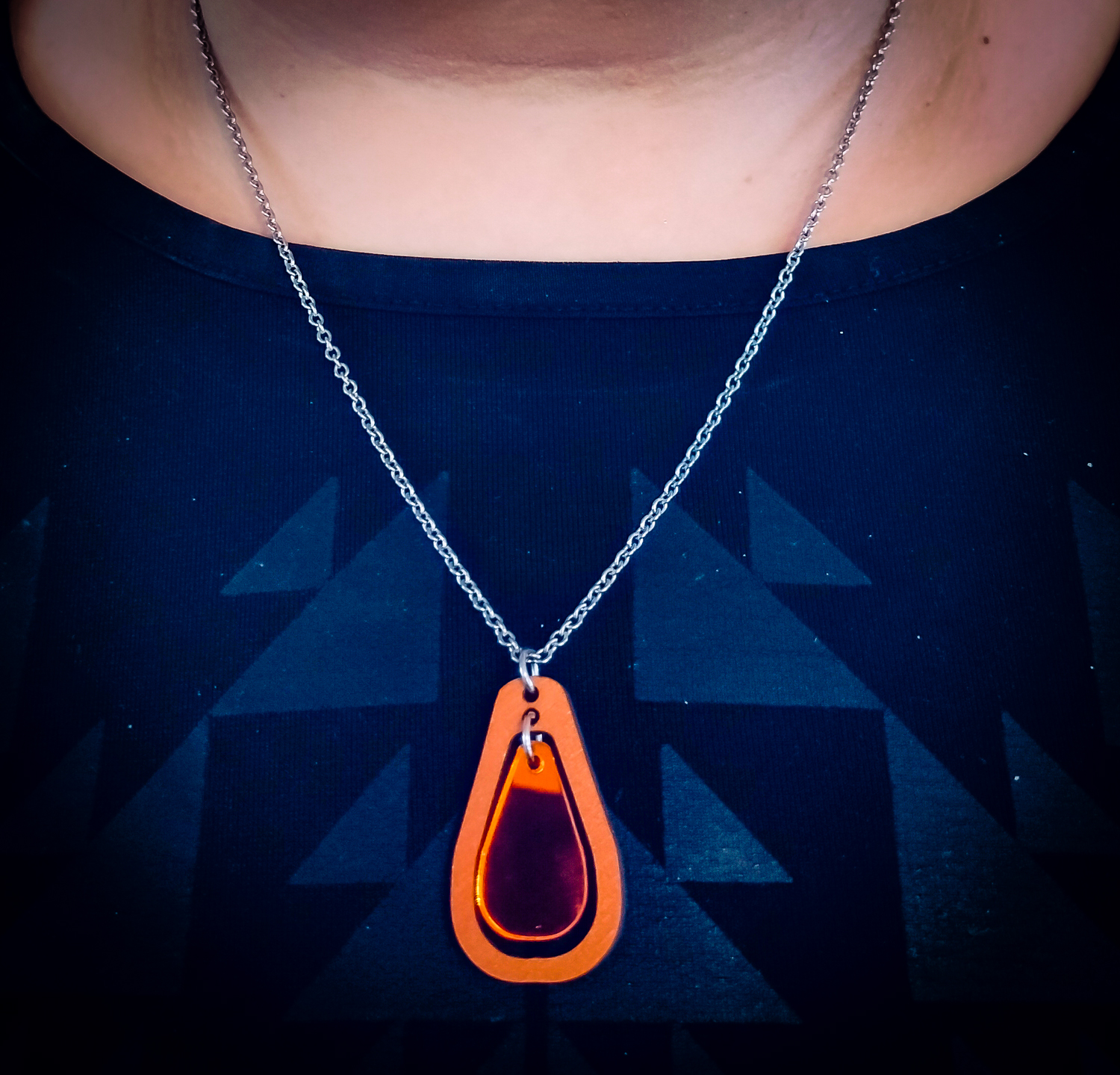 Riipuksen puuosan väri on kupari, peiliakryyliosan väri on oranssi.