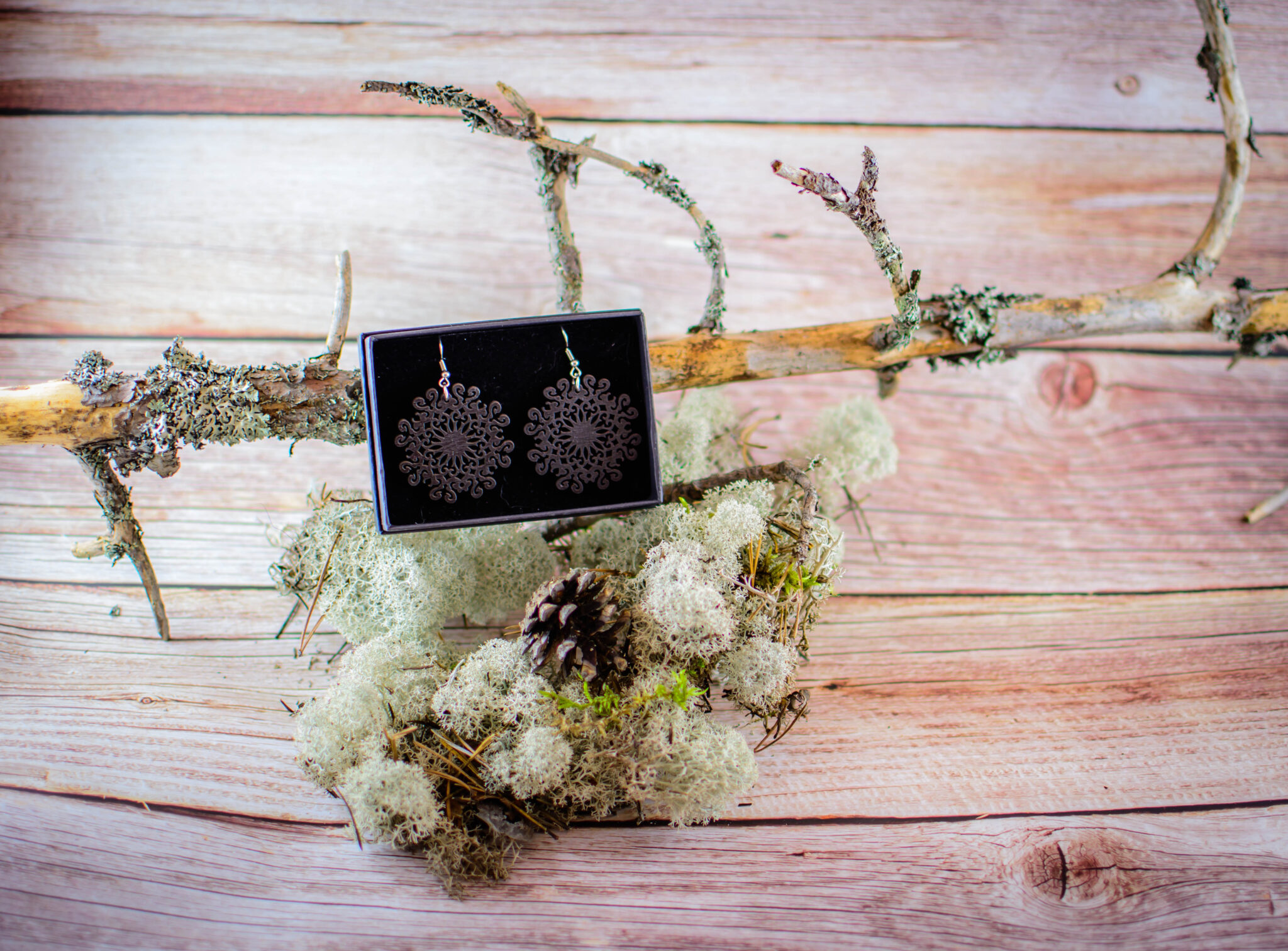 Tärkeää huomioitavaa on, että laserleikattujen korujen reunoissa näkyy polttojälki, mikä lisää tuotteeseen elävyyttä ja syvyyttä. Säilytä korut huolellisesti ja vältä voimakasta vääntelyä. Vaikka vanerista valmistetut tuotteet kestävät sadetta, suosittelemme välttämään niiden altistamista suihkulle, saunalle tai uimiselle. Huomaa myös, että värisävyt voivat hieman poiketa kuvassa näkyvistä väreistä, sillä ne ovat riippuvaisia omista väriasetuksistasi. Jokainen erä maalataan käsin, joten erien välillä voi pieniä eroja olla.