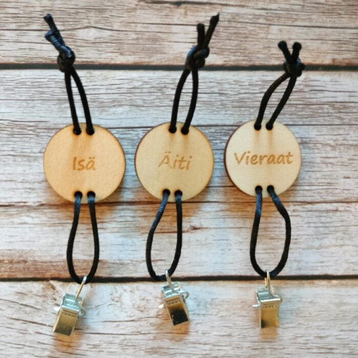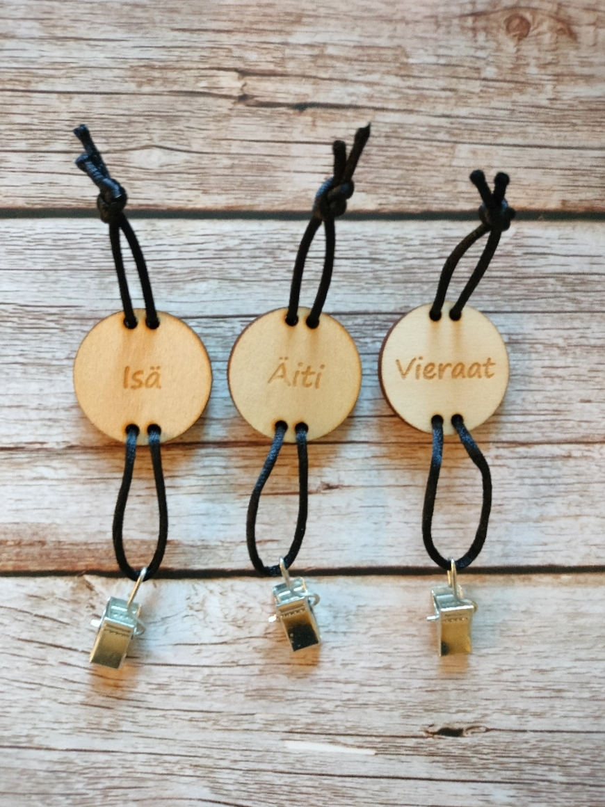 Pyyhekyltti on valmistettu kestävästä vanerista ja se on halkaisijaltaan 3,5 cm ja kokonaispituudeltaan noin 13,5 cm. persoonallinen tapa merkitä pyyhkeet