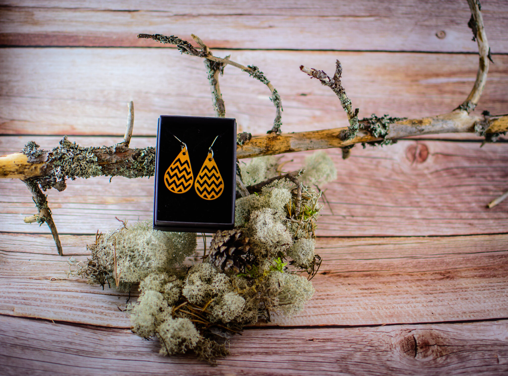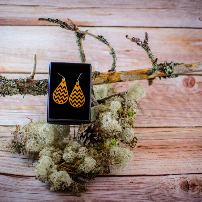 Tärkeää huomioitavaa on, että laserleikattujen korujen reunoissa näkyy polttojälki, mikä lisää tuotteeseen elävyyttä ja syvyyttä. Säilytä korut huolellisesti ja vältä voimakasta vääntelyä. Vaikka vanerista valmistetut tuotteet kestävät sadetta, suosittelemme välttämään niiden altistamista suihkulle, saunalle tai uimiselle. Huomaa myös, että värisävyt voivat hieman poiketa kuvassa näkyvistä väreistä, sillä ne ovat riippuvaisia omista väriasetuksistasi. Jokainen erä maalataan käsin, joten erien välillä voi pieniä eroja olla.