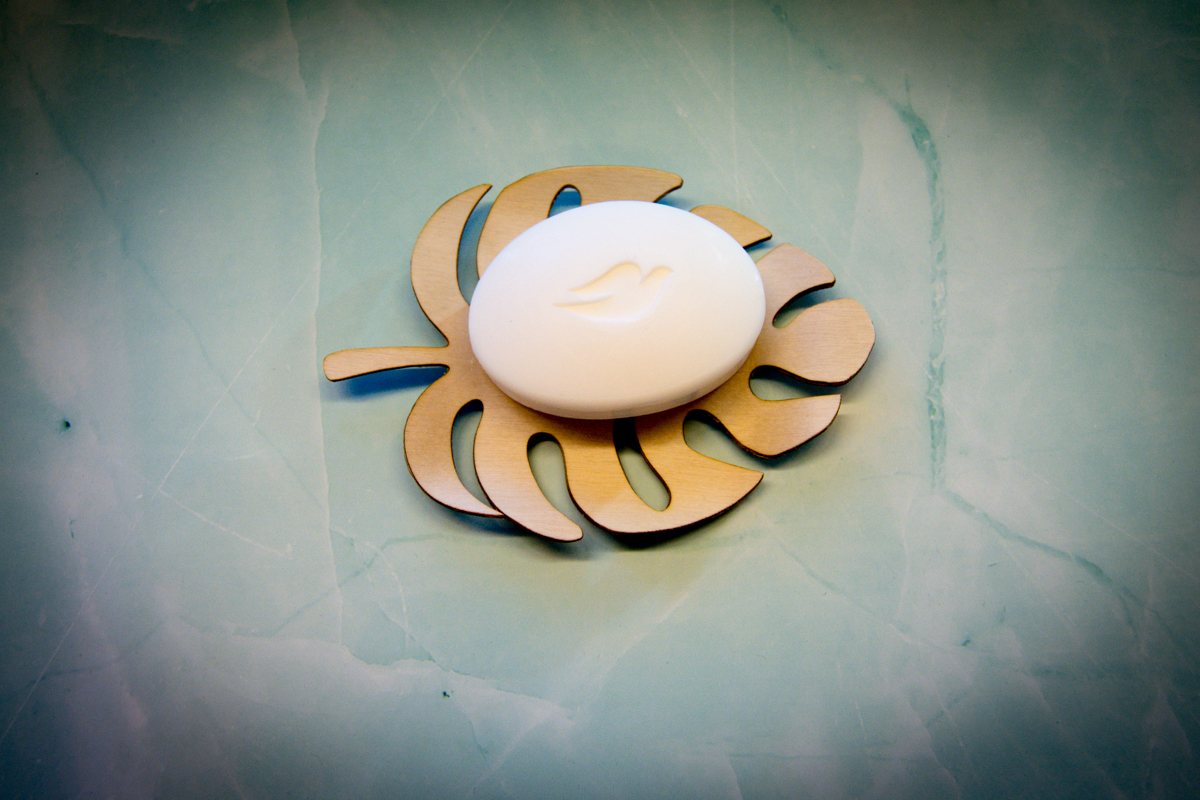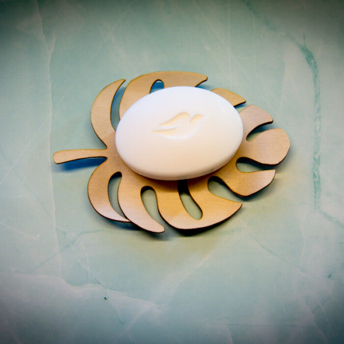 Saippuakuppi peikonlehti on muotoon valmistettu, palasaippuan säilytykseen, ja kylpyhuoneen kaunis yksityiskohta. saippuan säilytykseen yksityiskohta. Lahjaksi