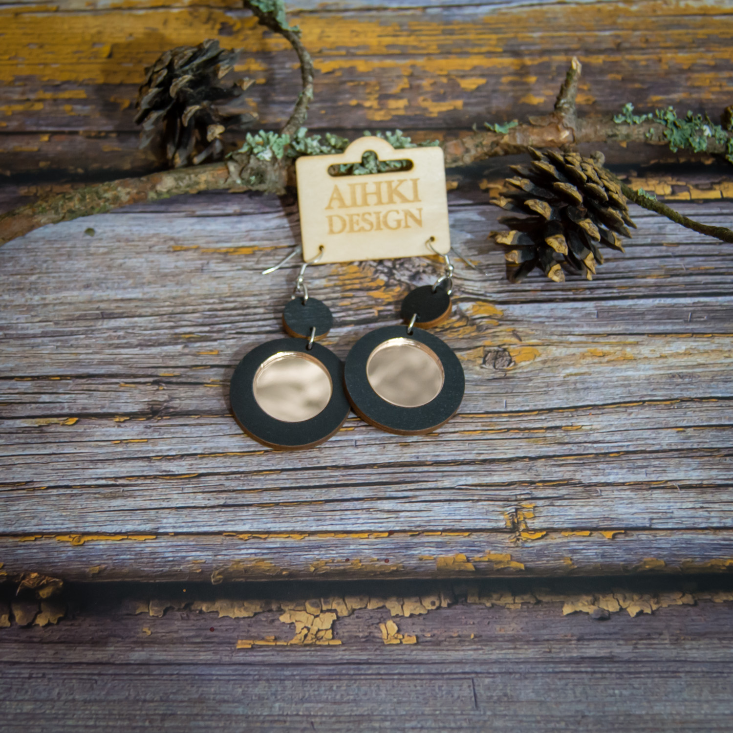 Tärkeää huomioitavaa on, että laserleikattujen korujen reunoissa näkyy polttojälki, mikä lisää tuotteeseen elävyyttä ja syvyyttä. Säilytä korut huolellisesti ja vältä voimakasta vääntelyä. Vaikka vanerista valmistetut tuotteet kestävät sadetta, suosittelemme välttämään niiden altistamista suihkulle, saunalle tai uimiselle. Huomaa myös, että värisävyt voivat hieman poiketa kuvassa näkyvistä väreistä, sillä ne ovat riippuvaisia omista väriasetuksistasi. Jokainen erä maalataan käsin, joten erien välillä voi pieniä eroja olla.