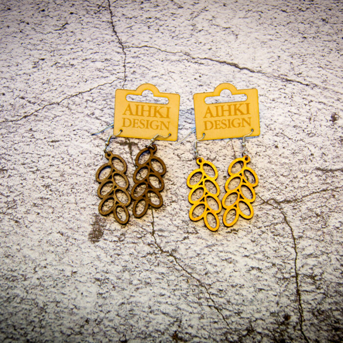 Terttu-korvakorut ovat täydellinen lisäys luonnolliseen tyyliisi. Nämä kauniit korvakorut on valmistettu suomalaisesta koivuvanerista, mikä tekee niistä kevyet ja mukavat käyttää. Korujen korkeus ilman koukkuosaa on 4,6 cm, mikä tekee niistä sopivan kokoiset jokapäiväiseen käyttöön. Terttu-korvakorut heijastavat suomalaista luontoa ja tuovat ripauksen skandinaavista eleganssia asuusi. Lisää nämä kauniit korvakorut kokoelmaasi ja erottaudu tyylikkäästi!