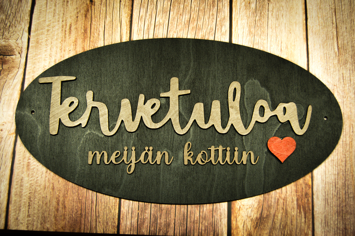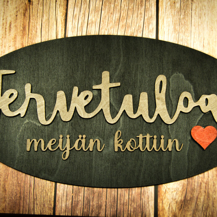 Kotimaisesta koivuvanerista soikea ovikoriste.