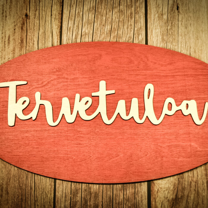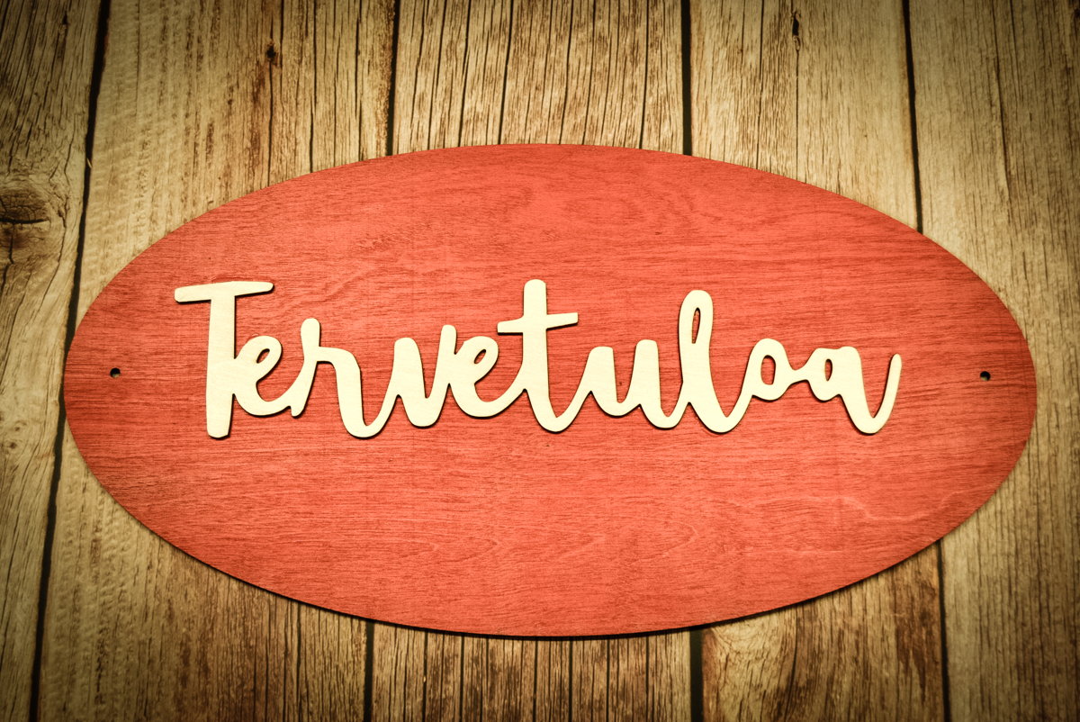 Kotimaisesta koivuvanerista soikea ovikoriste.