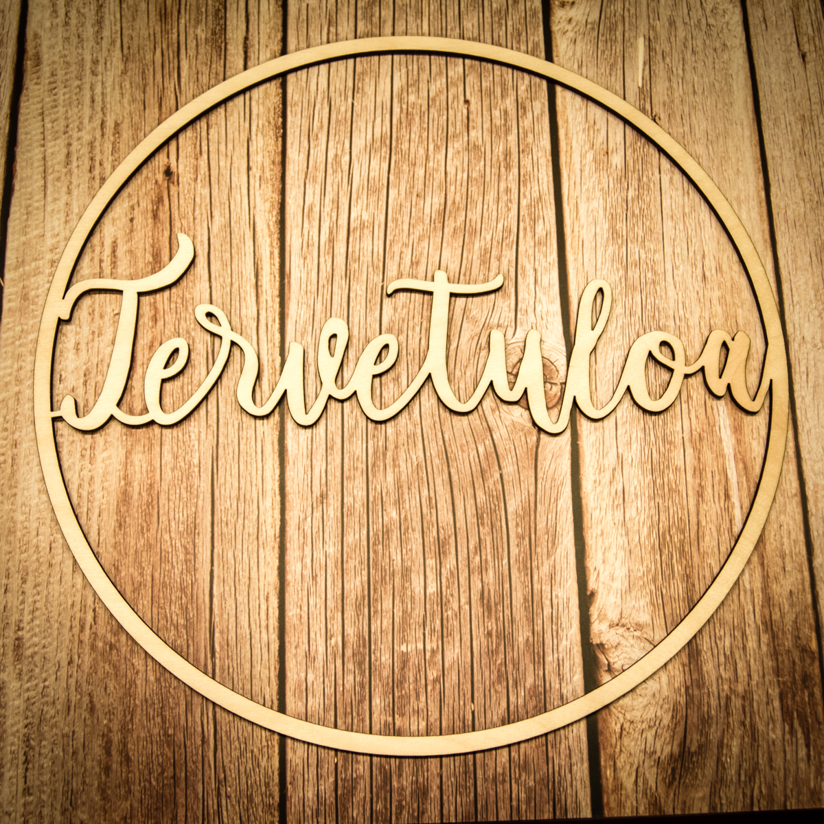 Kotimaisesta koivuvanerista valmistettu pyöreä ovikoriste on täydellinen lisäys kodin sisustukseen.