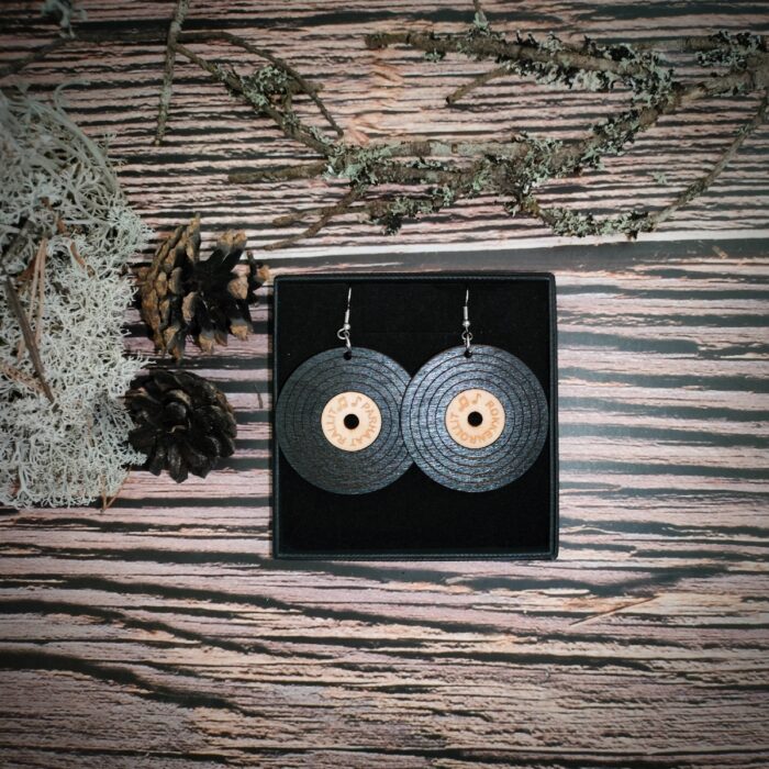 Tee tyylistäsi klassinen – Lp-levy korvakoru, luotu kauniista koivuvanerista.